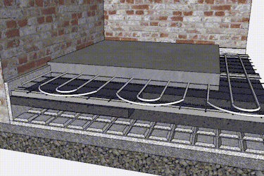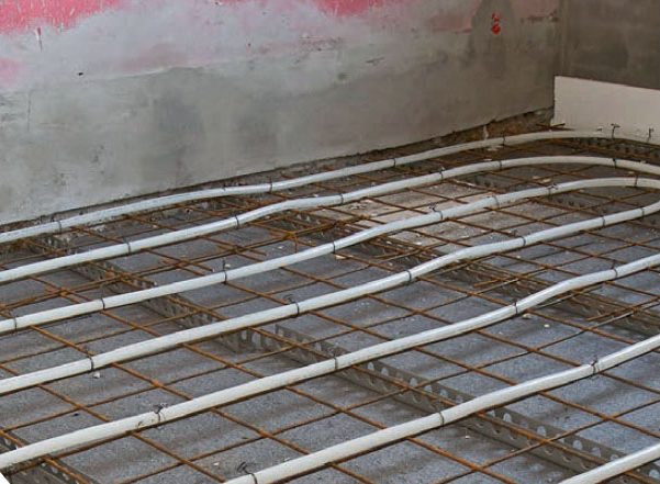 Golvvärme i slingor på armeringsnät