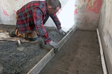 Börja i hörnet längst bort från dörren, och fyll därefter på med betong medan du rör dig utåt. Trampa till betongen mellan slingorna, men låt bli att pressa för hårt på slingorna.
