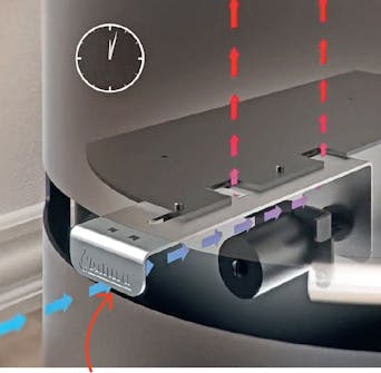 Till en början ska frisk luft sugas in i botten av brännkammaren, för att virket ska tända lättare. Så snart elden har fått fyr ska luftintaget stängas, och det kan göras både manuellt och automatiskt.