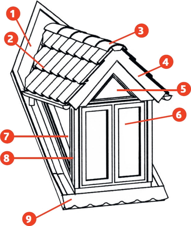 Här kan du se de fackuttryck som hantverkaren normalt använder om takkupans olika delar.