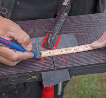 Har de gamla brädorna tagits ner hela använder du dem som mallar annars måste du plocka fram tumstock, mätband och smygvinkel.