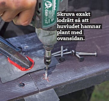 Skruva fast vattbrädorna. När den sista skruven har dragits fast kan du glädja dig över att du i framtiden slipper att tänka på underhåll.