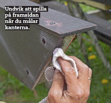 Grundolja och måla vindskivorna. Det är en fördel att göra det ett par dagar innan de ska användas. Då hinner de torka så att du slipper bli kladdig.