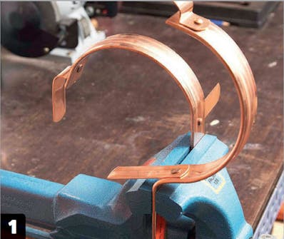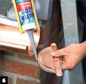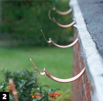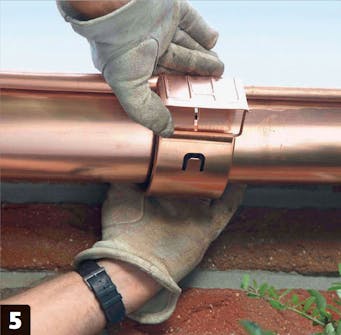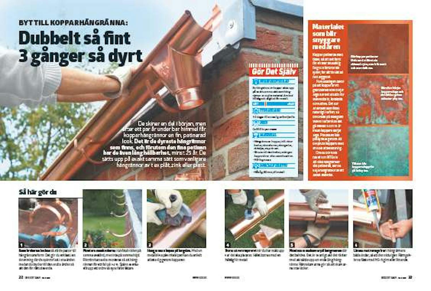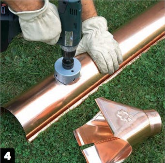 En hängränna av koppar sätts upp på exakt samma sätt som hängrännor av andra material. Använd hålsåg och sågblad för metall.