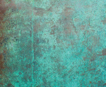 Koppar patineras med tiden, så att det först får en mer brunaktig färg och förlorar sin lyster, för att till sist bli helt ärggrönt.