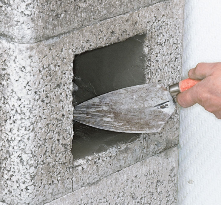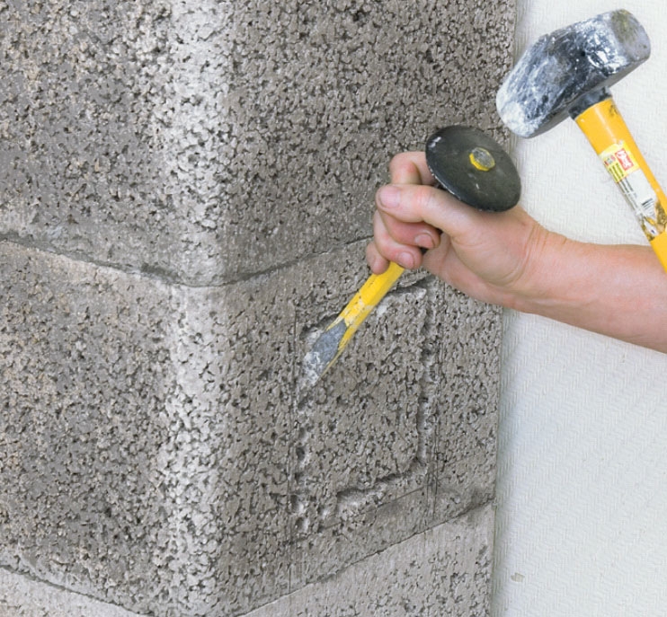 Hålet görs 2 cm bredare än blocket så att det blir plats för en snygg fog.