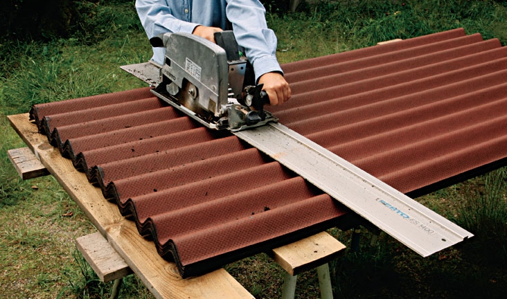 De verktyg du använder till trä kan du också använda till arbetet med bitumenplattorna. De kan alltså mycket väl sågas med fogsvans eller cirkelsåg. Verktyget får dock svarta ränder av asfalten - dem tar du bort med bensin, terpentin eller liknande.