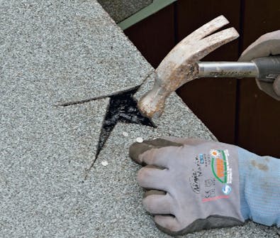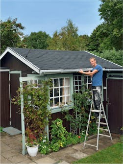 Traditionen med att lägga stegen på taket över uthuset orsakar många skador och det värsta är att man sällan ser dem förrän det droppar från innertaket - och då kan delar av träkonstruktionen ha fuktskadats. Små hål kan också resultera i bubblor i takpappen.