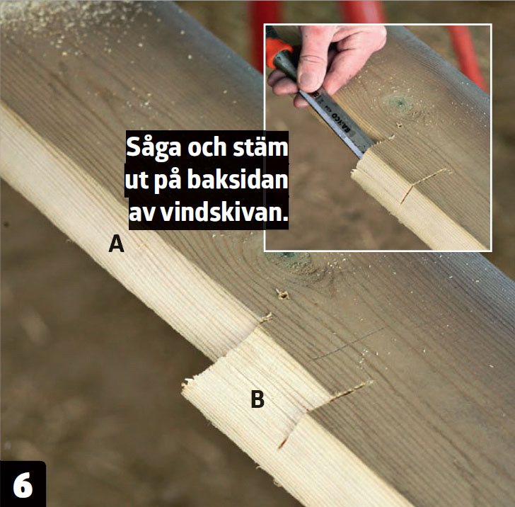 Såga ut hacken. Ställ in sticksågen på 45° graders vinkel (så att vindskivan inte stöter emot längre in på takpannorna) och såga ut alla hack.