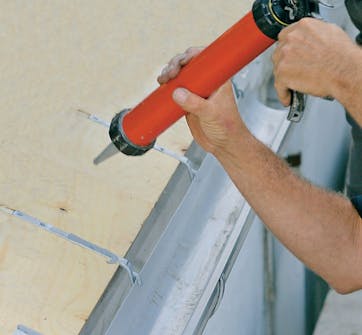 Skivorna skruvas fast med skruvar med försänkt skalle så att inte den takpapp som skall klistras ovanpå blir skadad.