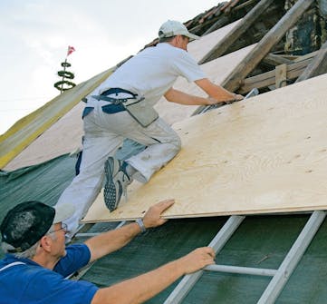 Det fasta underlaget skall kläs med takpapp och helst så snart som möjligt, så att Henning och Lise slipper besväret med att lägga ut presenningar.