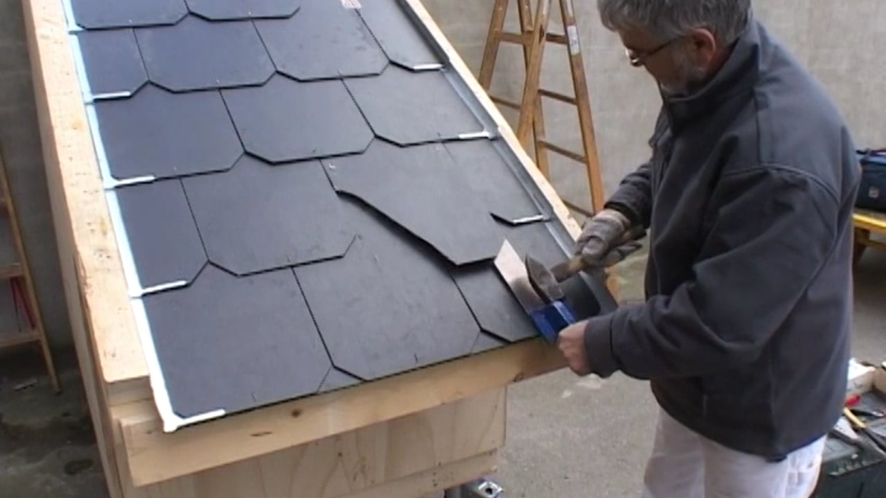 Tak Byta skifferplattor VIDEO: Här har en skifferplatta spruckit och taket är därför otätt. Det måste repareras så fort som möjligt annars finns det risk för att vattenskador.