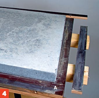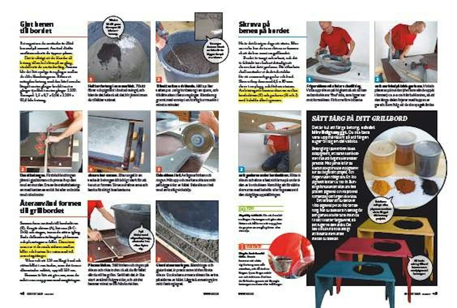 Formen byggs som en så kallad negativ form, där det som blir bordets övre och yttre sida, vänder ner i botten av gjutformen. Det smarta med den här formen är att den används till både gavlar och själva skivan för grillbordet.
