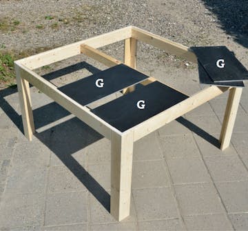 Nu återstår endast ett enda moment innan du kan måla underredet och lägga bordsskivan (alltså de åtta klinkerplattorna) på plats i underredets fals.