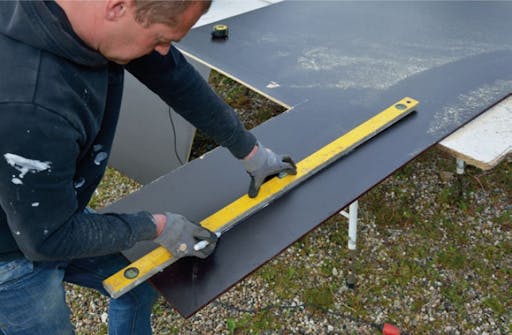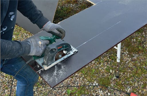 Såga ut delarna med cirkelsåg. Det underlättar en del om du spänner fast ett anhåll att styra sågen mot eller om du använder en sågskena.