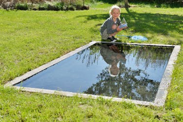 När du har bestämt var du vill anlägga dammen markerar du för den med käppar.
