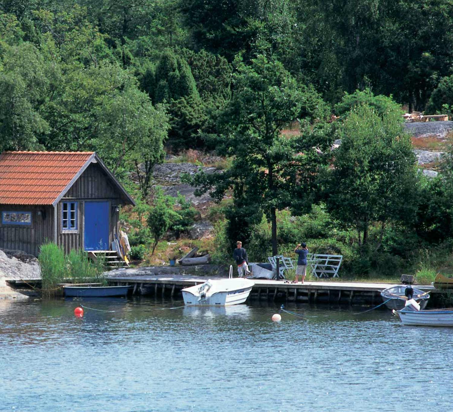 Det är praktiskt, men inte alltid tillåtet, med en bod eller ett uthus vid bryggan. Där kan man förvara båttillbehör och fiskeutrustning.