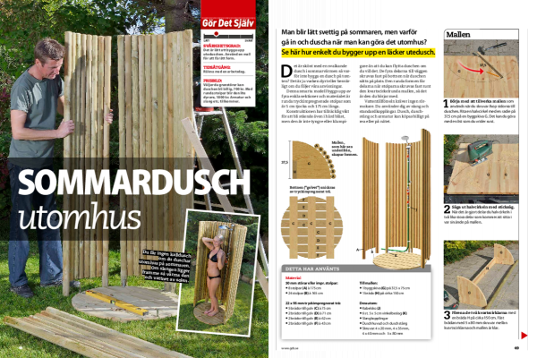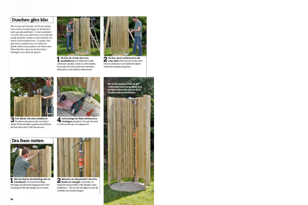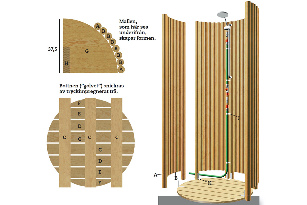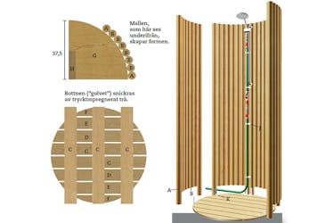 Det är lätt att bygga upp uteduschen. Använd en mall för att få rätt form.