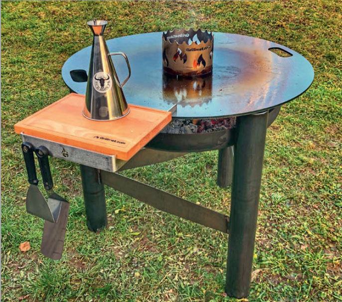 Den runda grillplåten är designad för att användas på en rund “eldstad” med en hög fast kant och en diameter på mellan 50 och 100 cm.