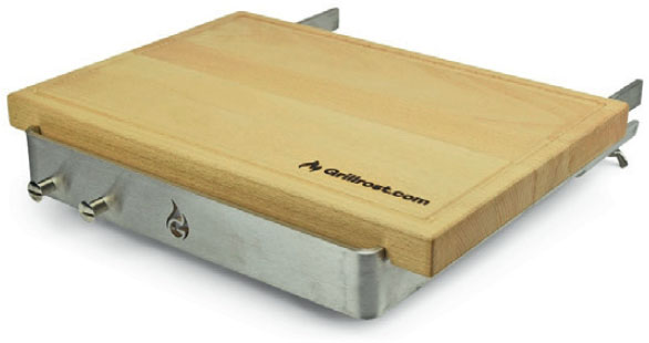SIDOBORDET på 35 x 25 cm kan spännas direkt på plåten. Det har två krokar för t ex en kökshandduk och en grilltång.