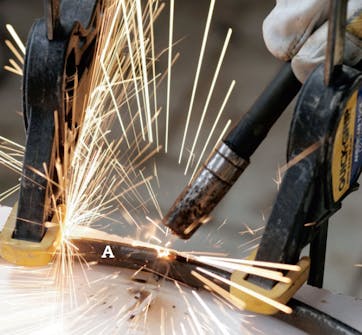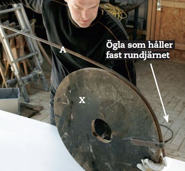 Svetsa ihop ringen av ett 12 mm rundjärn (A). Kontrollera att ringen är plan. Om den inte är det kan du lätt böja den så att den blir helt plan.