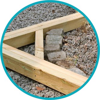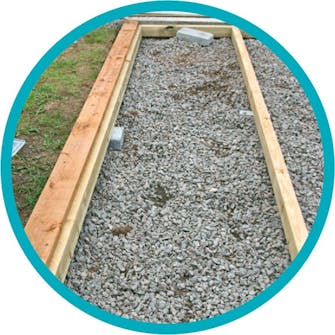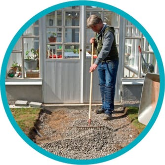 Ett lager grus hjälper till att dränera jorden, och ett lager makadam ovanpå gruset gör det lätt att jämna till underlaget, så att det blir plant.