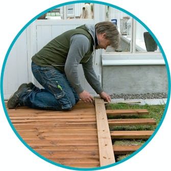 Se till att hålla löpande koll på måtten, så att antalet trallbrädor går jämnt ut med hela antal. Det kan du enkelt åstadkomma genom att reglera mellanrummen.