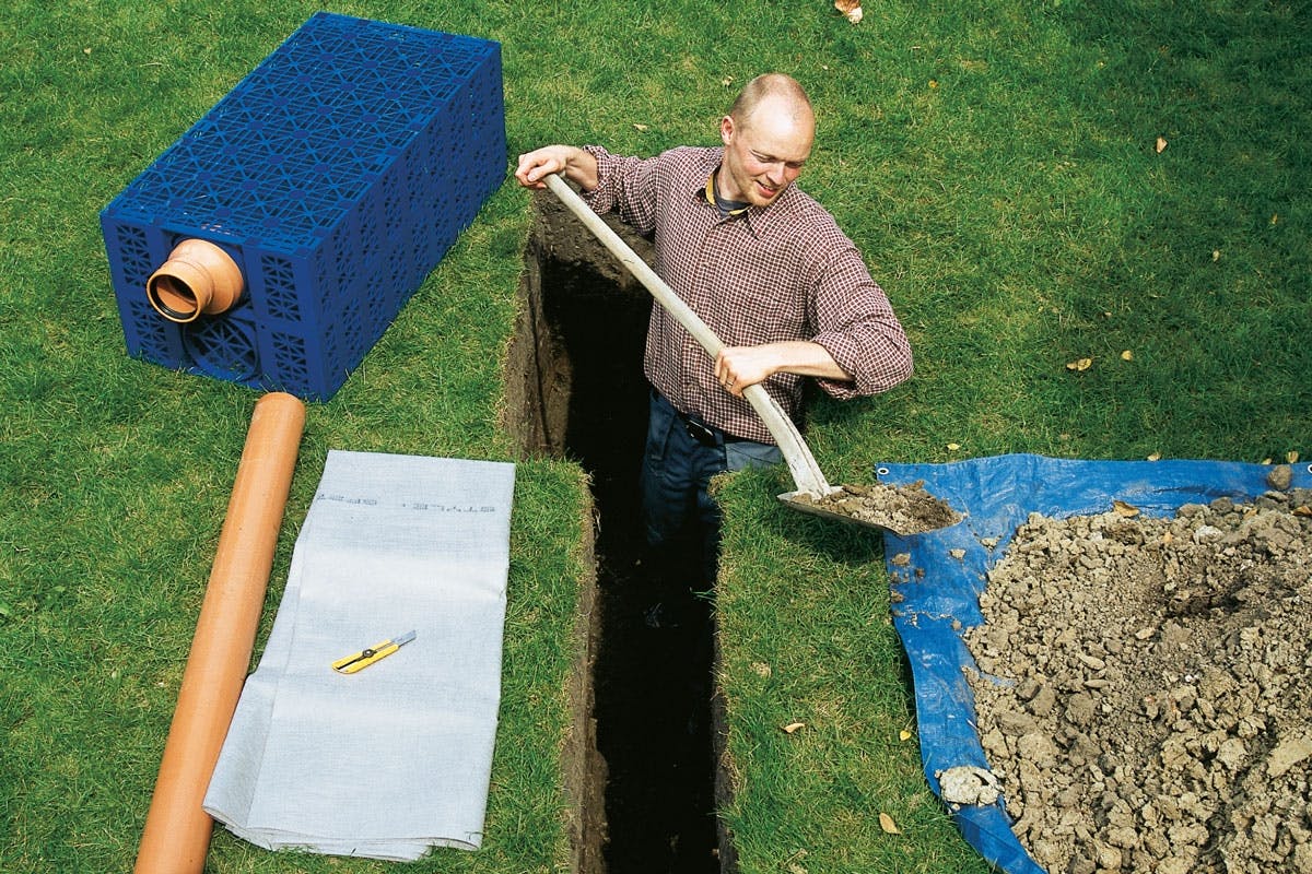 2. Dränera gräsmatta med dräneringsrör