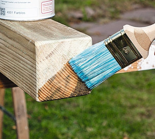 Ändträ är det mest sårbara stället på alla slags virke, eftersom det är mer “öppet” här och känsligt för fukt. Därför är det en bra investering att anstränga sig lite extra för att just skydda ändträet med grundolja med fungicider - ett medel mot svamp som hämmar röta - så att stolparna får en så lång livslängd som möjligt.