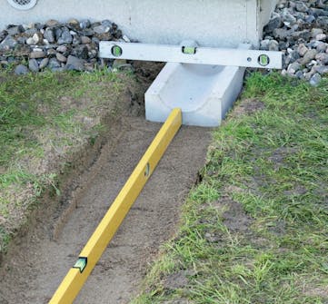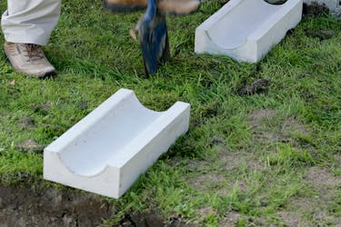 Gräv en ränna från stupröret till rabatten. Gör den lite bredare än dina betongmoduler och se till att den är så djup att du först kan skapa en bädd av bärlagergrus och sättgrus.