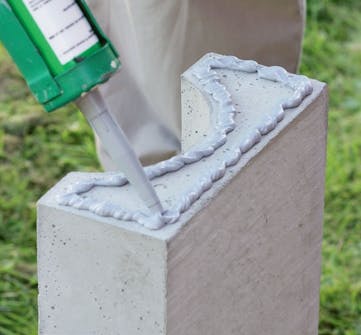 Blanda en del cement med fyra delar grus, t.ex. 0-8 mm eller 0-12 mm, och tillsätt vatten undan för undan tills du får en rätt smidig massa. Eftersom du inte ska blanda så mycket så kan du göra det med en murslev i en hink. Men har du en omrörare använder du förstås den.