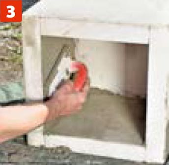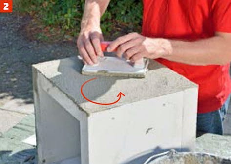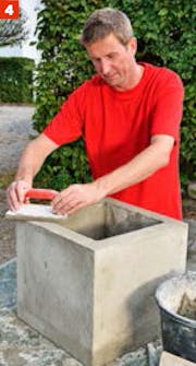 Om du finputsar krukan med putsbruk får det ett snyggt och likartat utseende på alla sidorna. Köp ett färdigblandat putsbruk (eller kakelfix) som bara ska blandas med vatten. Det ger en fin yta med lätt struktur och gör krukan frostsäker. Kom ihåg att putsa krukan även på insidan så håller den kvar vattnet bättre. När bruket har torkat efter cirka ett dygn kan du måla krukan.
