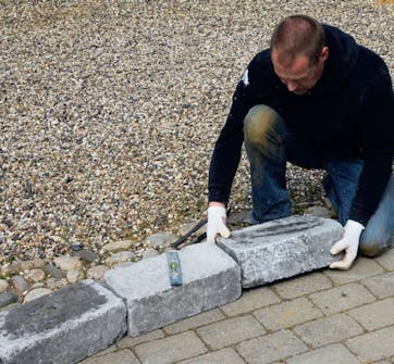 Kolla med vattenpass att stenarna läggs vågrätt och att de staplas lodrätt.