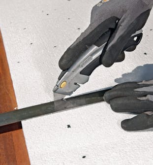 Skär cellplasten i bitar. Använd en vass hobbykniv. Det räcker om skivorna blir 40 cm höga och därmed slutar 10 cm från ovankanten på odlingslådan.
