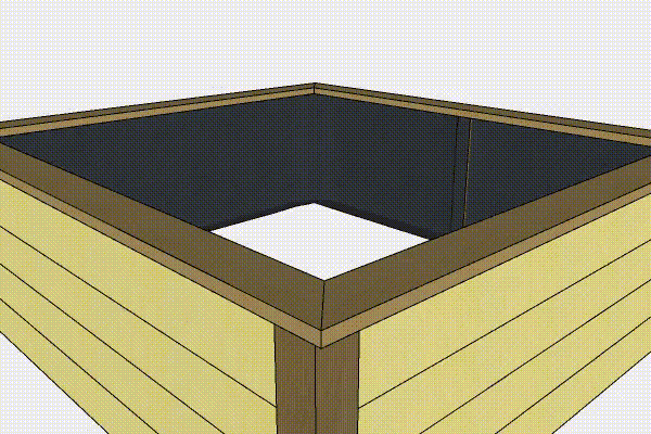 Täckbrädorna skruvas på sist. De ska kapas i en vinkel på 45 grader i hörnena. Glöm inte att förborra med ett 5 mm borr innan du skruvar fast brädorna, så att de inte spricker.