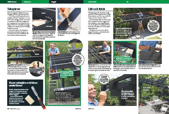 På takspärrarna ska det sättas tvärgående läkt. Då får pergolans tak ett slags flätat mönster, som kan vara stöd åt de växter som ska växa över “taket”.