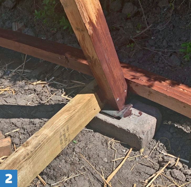 Börja med att sätta de tvärgående bjälkarna så att ett T bildas inne i halvcirkeln. Skruva fast syllen så att den får rätt böjning.