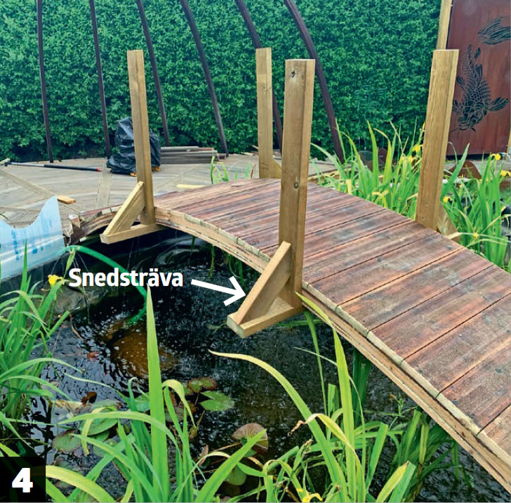 Gör en trappa vid änden genom att såga ut trekantiga klossar som kan anpassas till böjningen. Därefter kan trappan kläs likadant som resten av bron.
