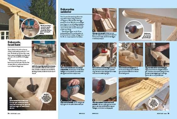 Rent konstruktionsmässigt finns det inga skäl att skapa sirliga sniderier i överliggarna. Man kan låta dem ligga precis som de är. Men det ser onekligen mer elegant ut om de kraftiga stolparna bara smalnas av en aning. Om det ska vara med mer eller mindre ”eftertryck” är helt upp till dig.