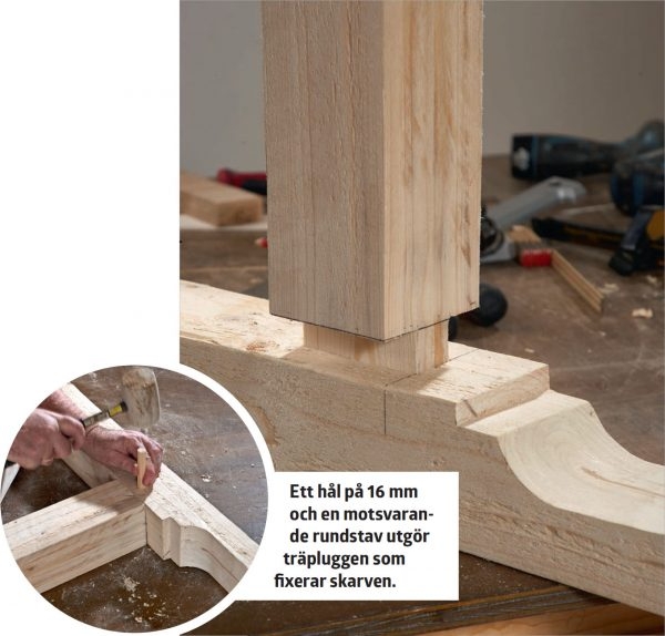 Den klassiska skarven är starkare än beslag, och med en plugg som går tvärs igenom skarven kan det inte bli bättre.