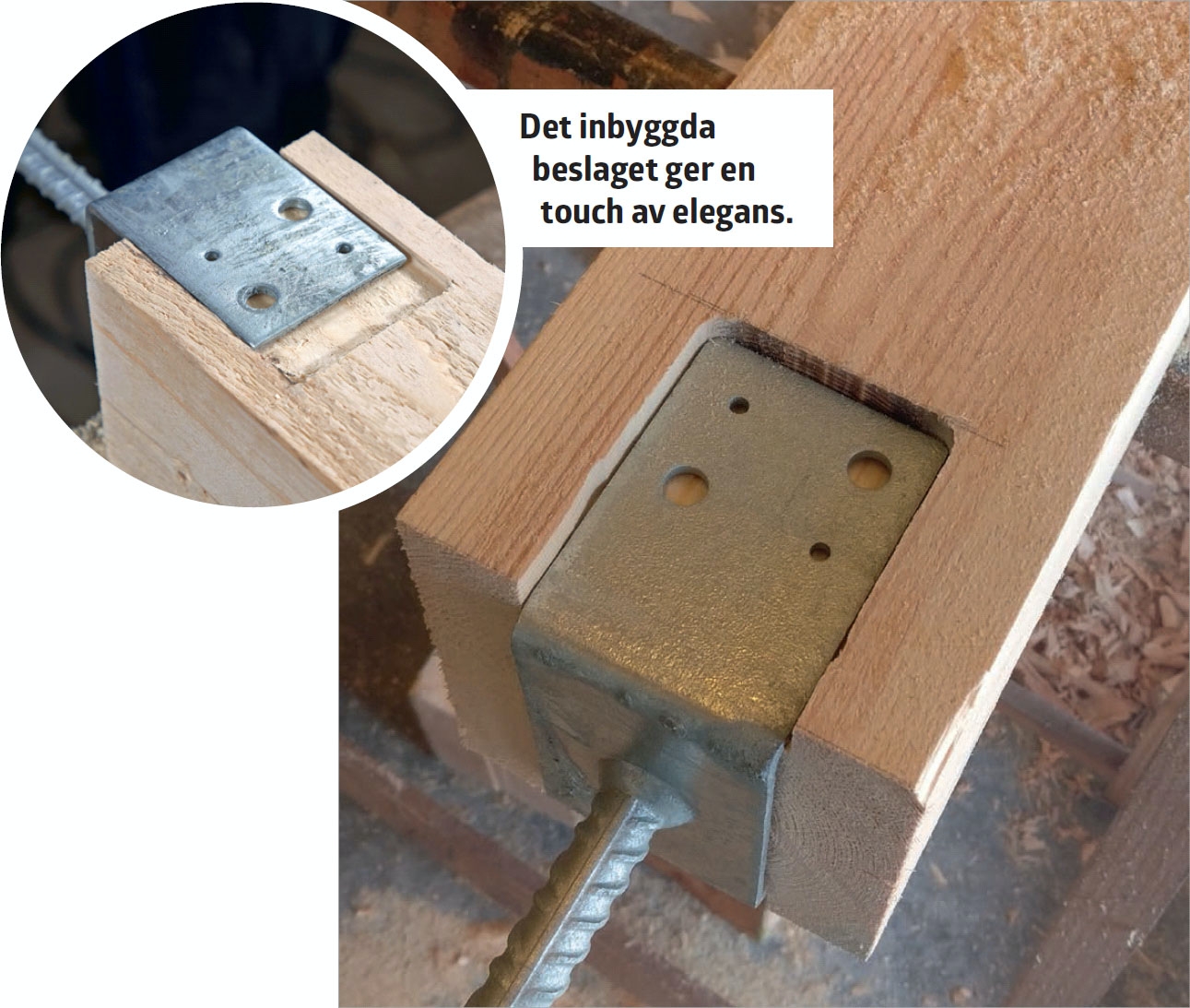 Men för att trots allt göra det så elegant som möjligt byggs beslagen in i stolparna.