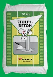 Gjut fast stolparna. Blanda betongen enligt instruktionen och häll ner den runt stolparna. Betongen vibreras för att bli av med luftbubblor och får torka i en vecka. Under tiden kapas brädorna med ett 45-graders snitt nere för vatten att rinna av.