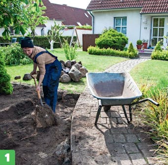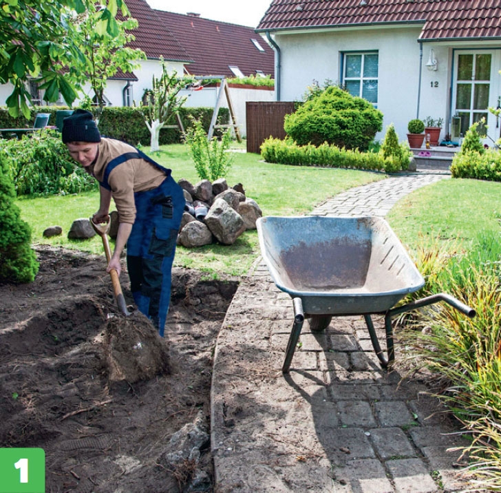 Gräv bort det översta jordlagret, ca. 20 cm, så att du kan bygga upp underlaget. Avlägsna även ev. rötter från ogräs, så att de inte växer upp i din nya gärdsgård.