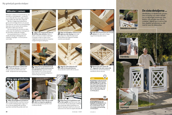 De diagonala listerna i mönstret bidrar till att stabilisera grindarna. Vi har också använt tre olika typer av fogning, som gör grindarna otroligt starka.