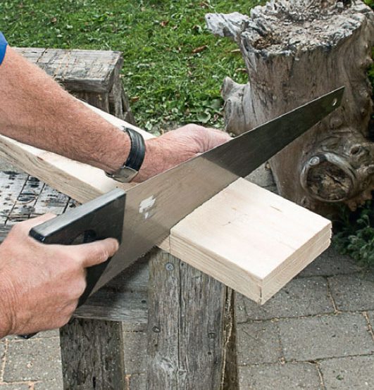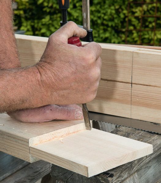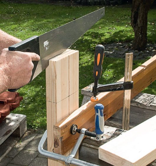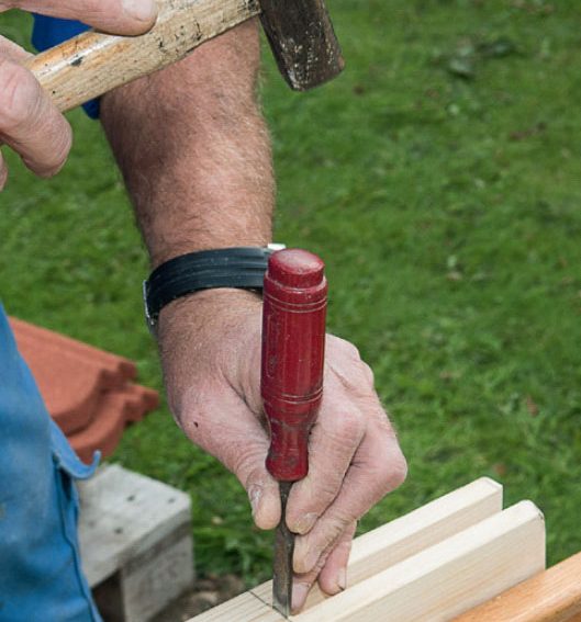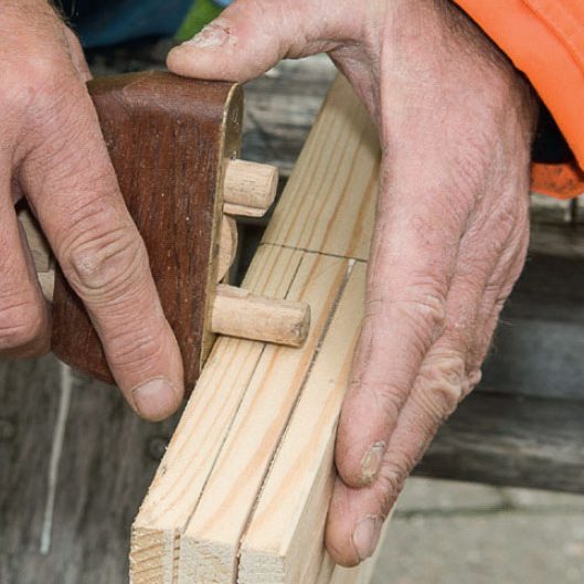 De rejäla snickerifogarna är en utmaning, men egentligen ganska enkla att göra: I den ena ramdelen ska det sågas ut ett spår. Det ska passa med uttaget, eller tappen, som sågas i den andra ramdelen.