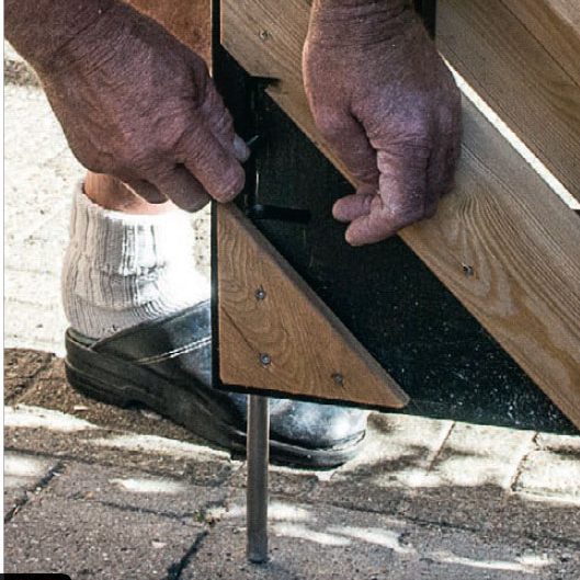 Nederst sätts ett likadant beslag. Här ska det bara borras ett 15 mm-hål i betongplattan undertill.