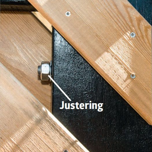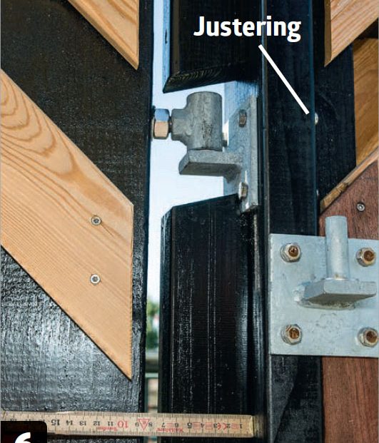 När du mäter måste du se till att det är luft mellan de två grindhalvorna. Det kan du göra både med hjälp av grindarnas bredd när du bygger dem och med en finjustering av gångjärnet efteråt.