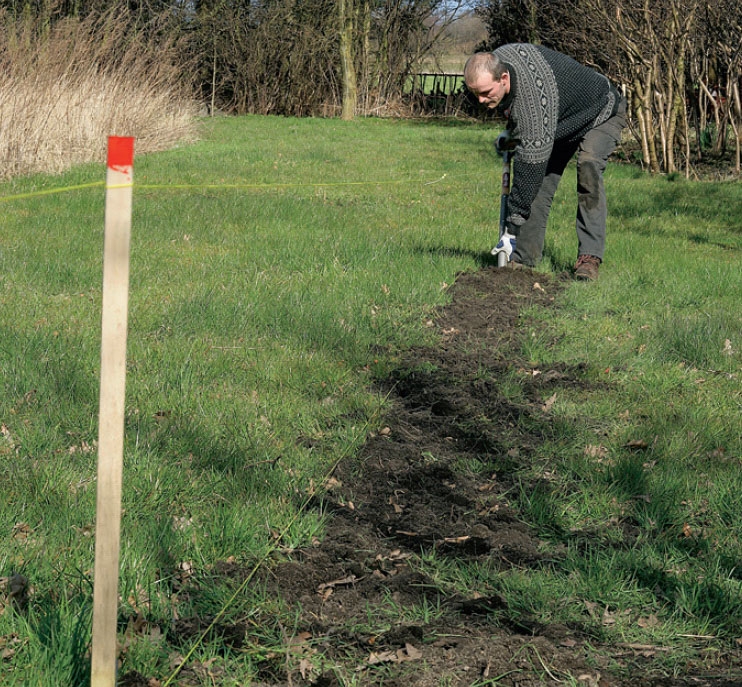 Med förberedelse av jord, plantering, flätning och finjustering klarar du säkert 15-20 meter per dag.