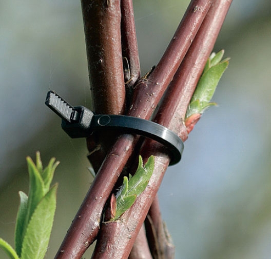 Till sist klipps toppen av alla skott, cirka 5 cm ovanför buntbandet. Klipp också bort alla ändar på buntbanden. Det ser inte så snyggt ut med utstickande plastremsor.