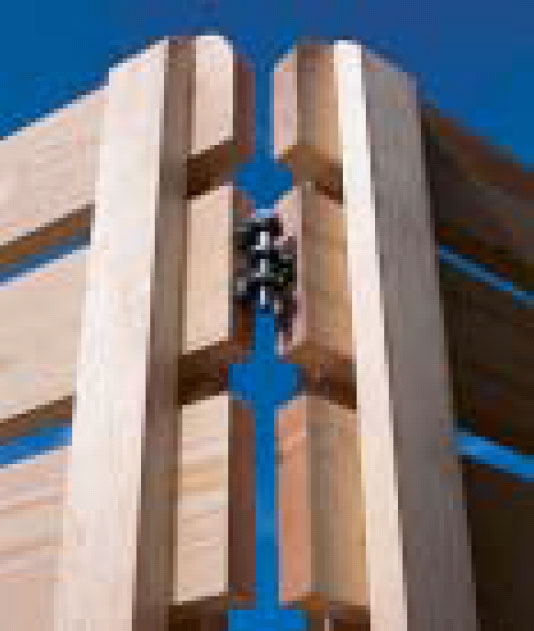 Samma metod används på mittsegmentet, där de två öglorna monteras upptill och nedtill på varje sida. Varje gångjärn hålls ihop med en bult.